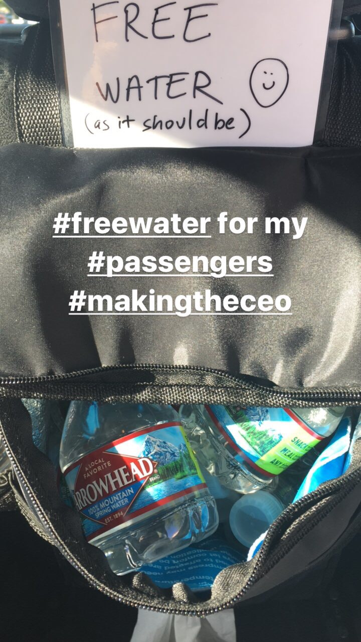 I bought this bag at Amazon to provide free water for my passengers. Summers in Las Vegas are no joke. No one wants to be out there with no water when temperatures go over 100 degrees every day for 4 months. ? Follow me on Snapchat and Instagram.